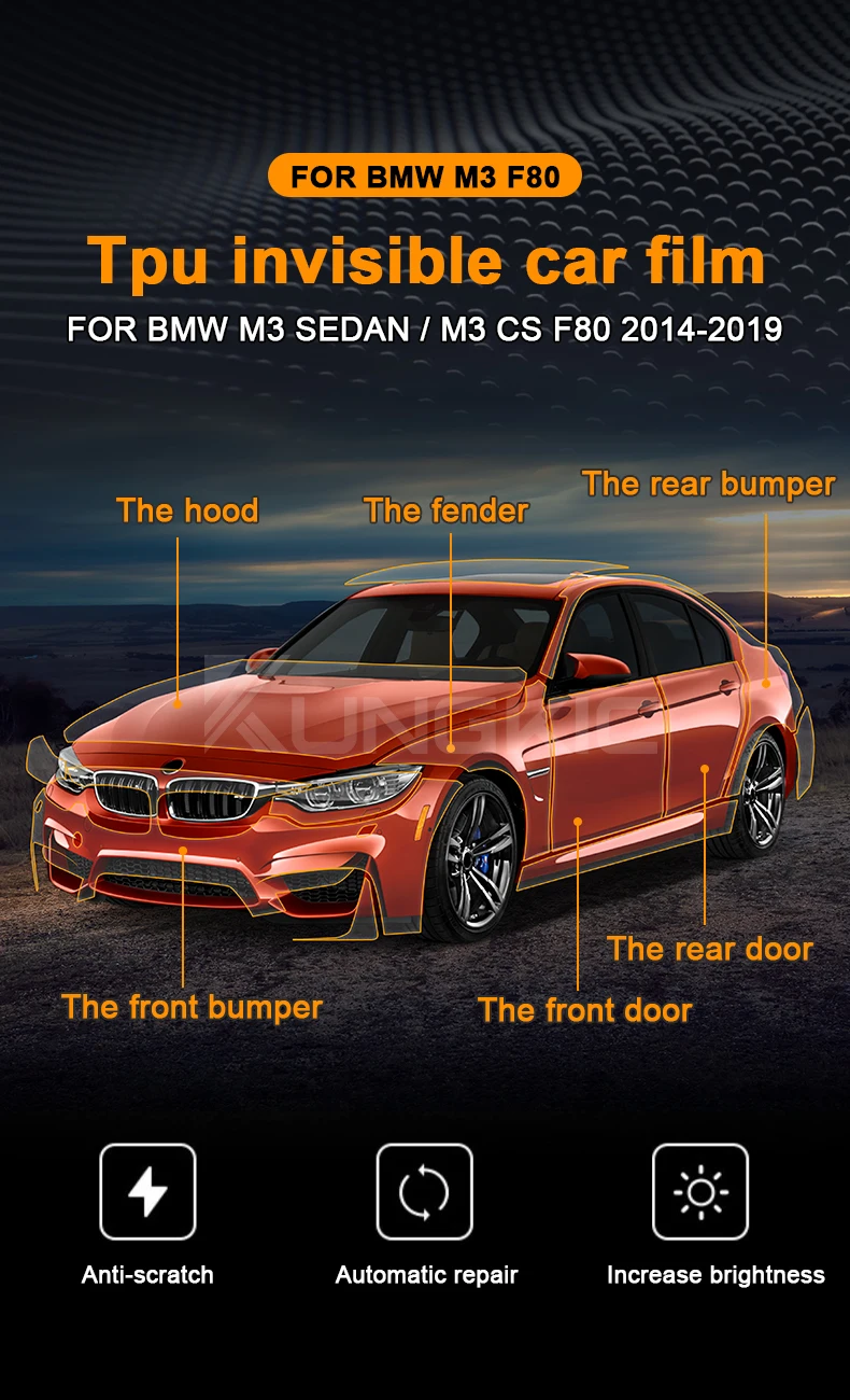 Pre-Cut Paint Protection Film for BMW M3 Sedan CS F80 2014-2019